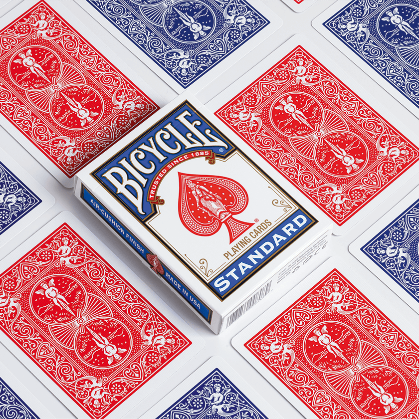Bicycle Gaff Kartenspiel | Rot-Blau: Vorderseite rotes Rückenmuster, Rückseite blaues Rückenmuster.