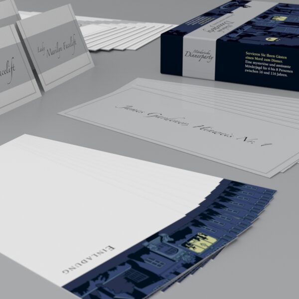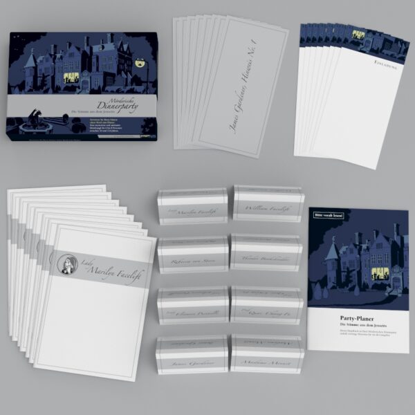 The murderous dinner party is a crime dinner for home. An evening with friends, relatives and acquaintances. But the idyll is deceptive: a murderer sits at the table with them! Now it is important to expose the perpetrator. Dialogue scenes, hidden evidence, treacherous letters, shocking photos and secret documents help. And a voice that keeps further surprises ready. It won't be very simple, because each of the guests has a dark secret ...