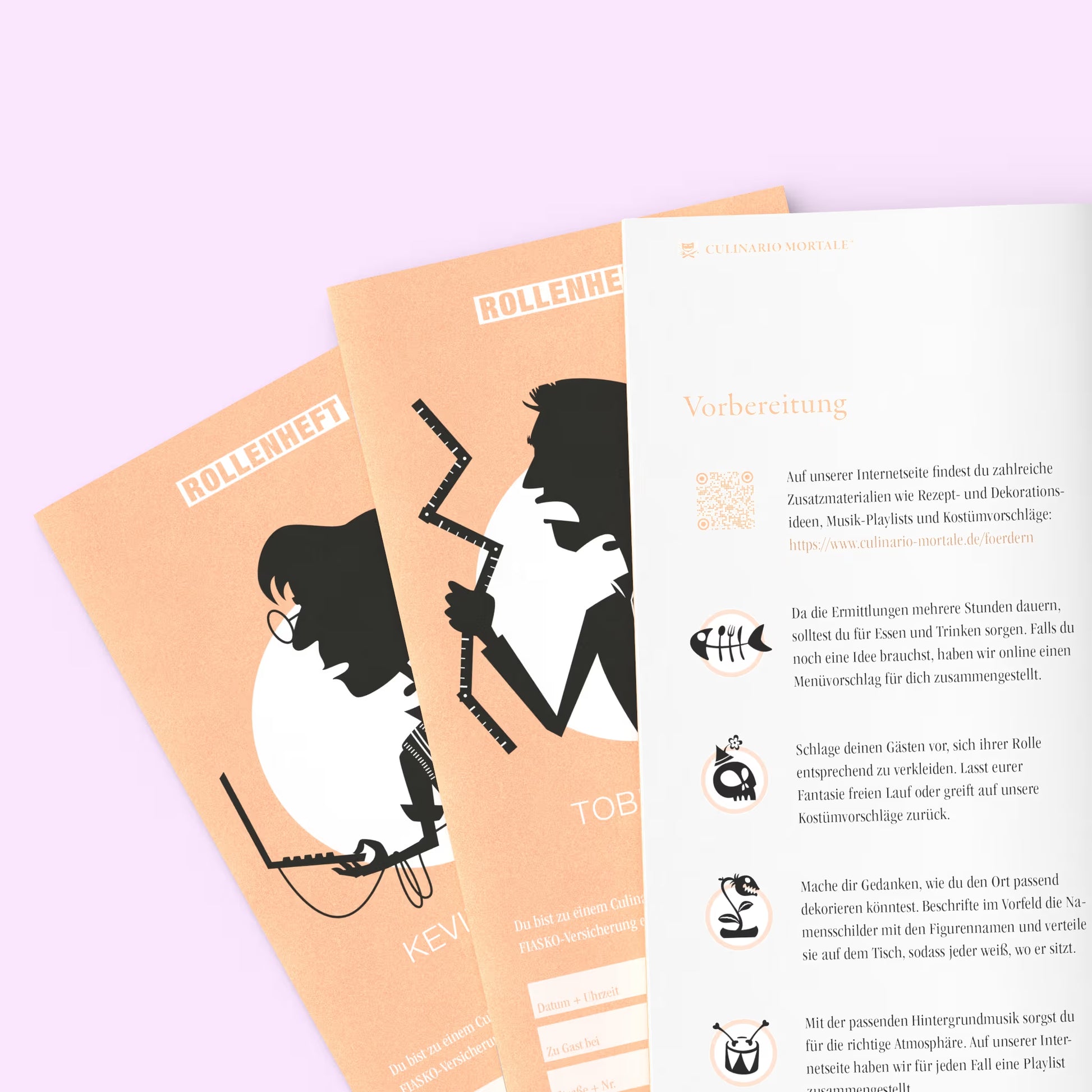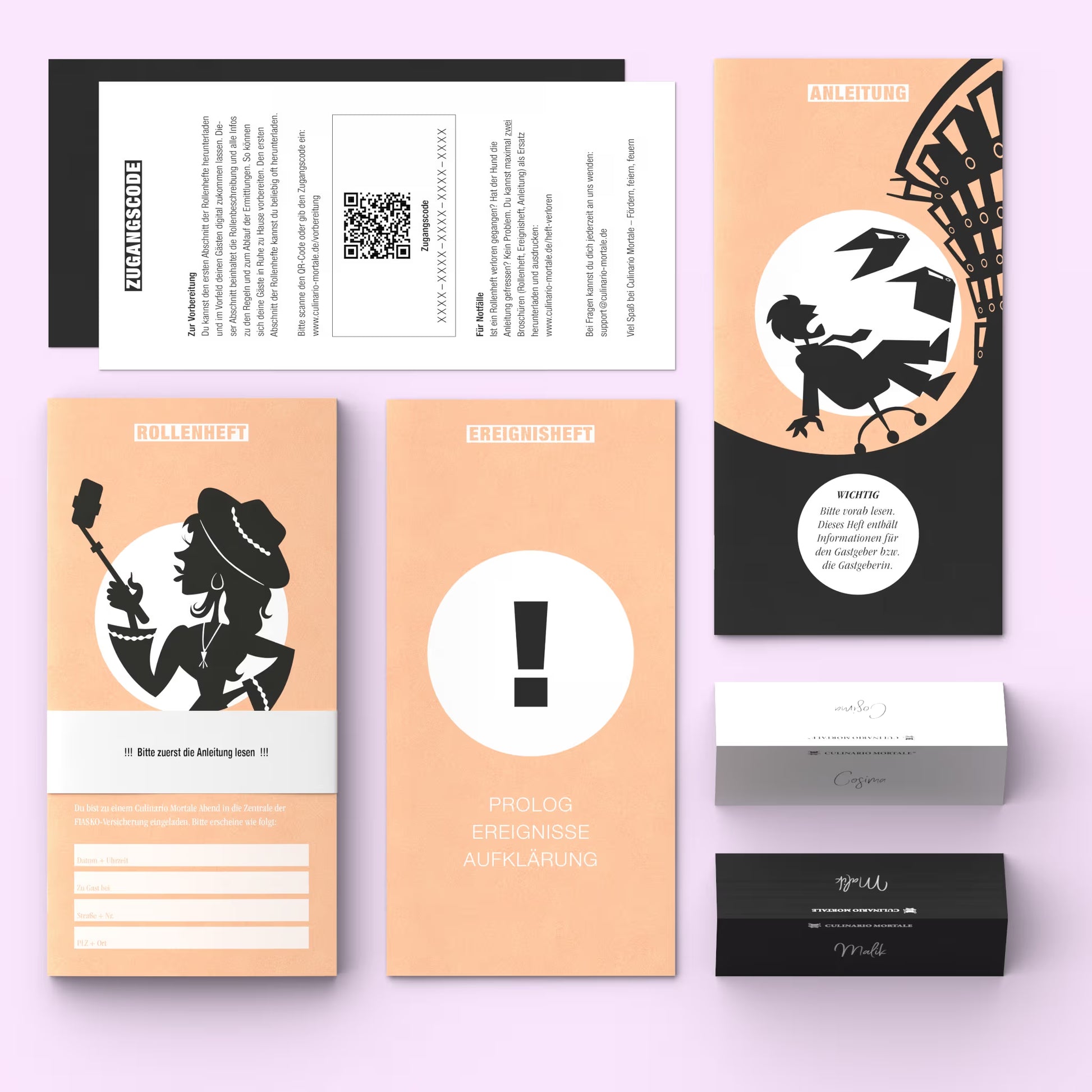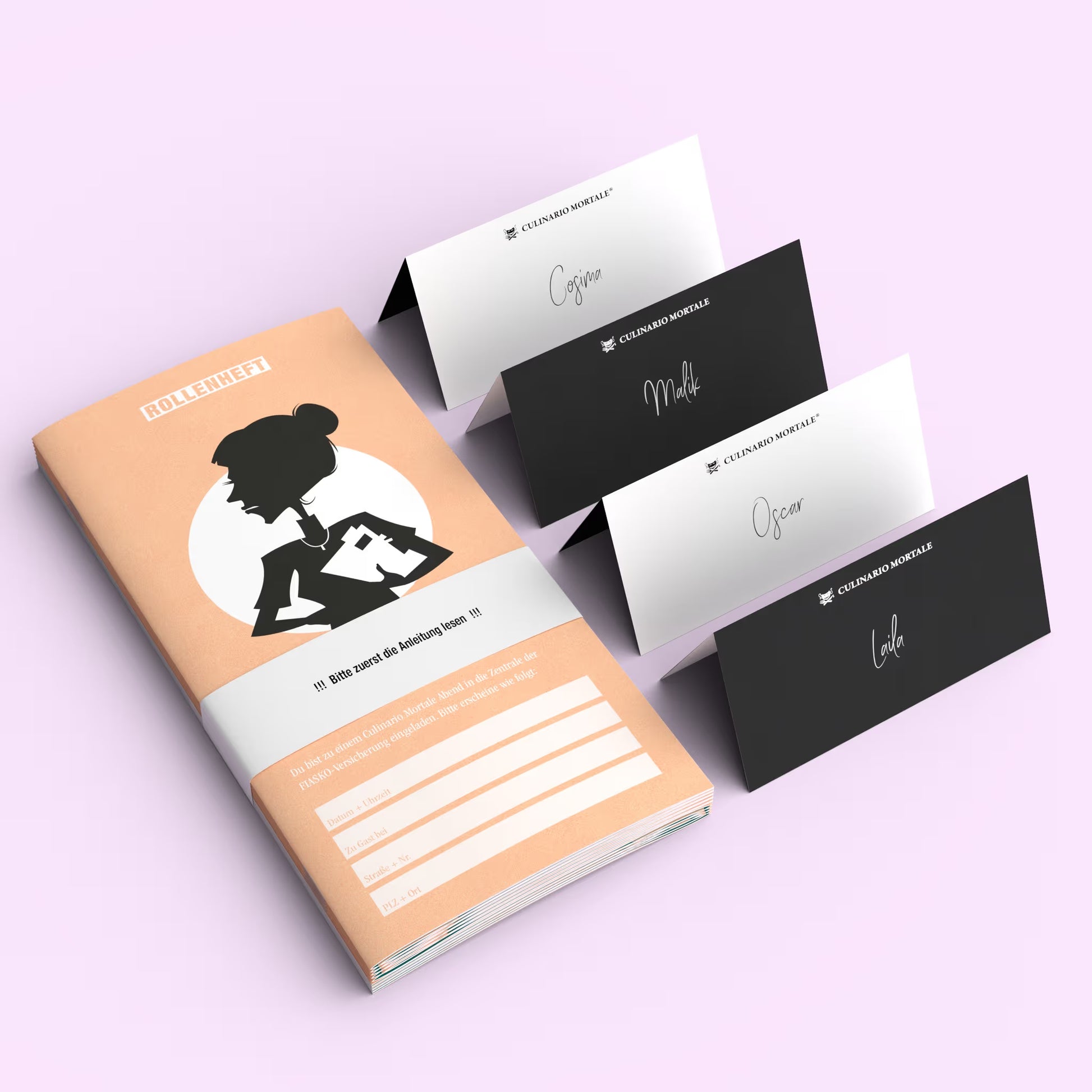 Du erhältst alles, was du für dein eigenes Krimidinner für Zuhause brauchst: